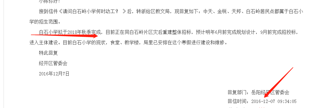 标题: 白石岭小学何时扩建,请给个确切时间