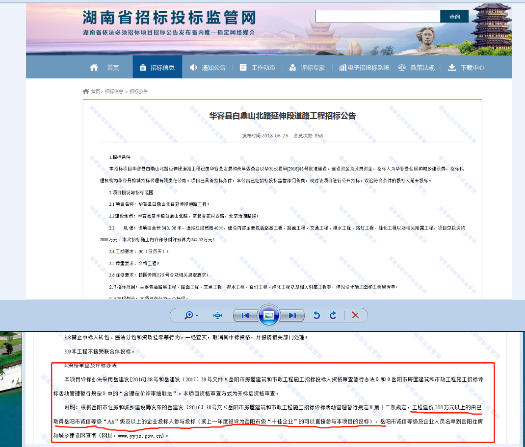 我局于2016年8月18日下发了关于印发《岳阳市房屋建筑和市政工程施工招标投标人资格审查暂行办法》和《岳阳市房屋建筑和市政工程施工招标评标活动管理暂行规定》的通知(岳建发(2016)38号)文件。